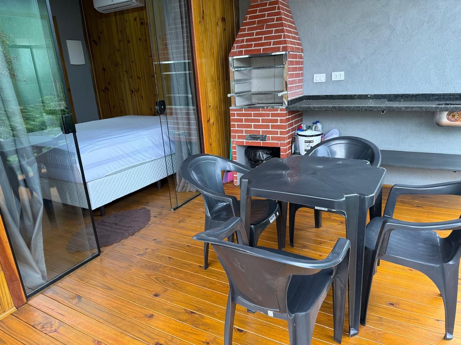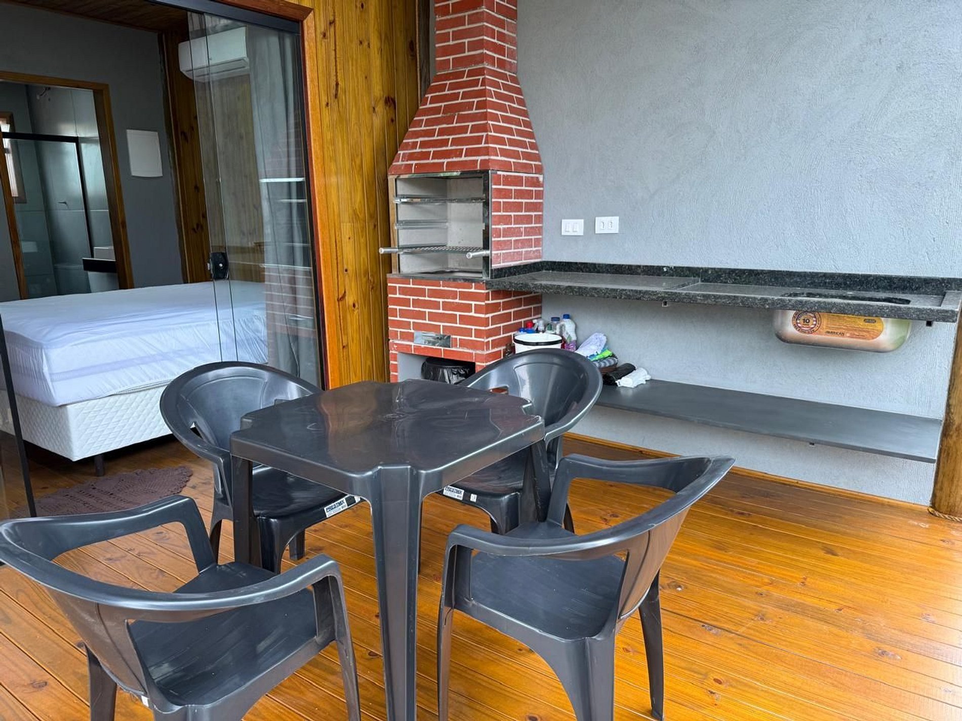 Chalé charmoso estilo estúdio, com todas as comodidades para até 4 pessoas, varanda com churrasqueira e a poucos metros da praia.