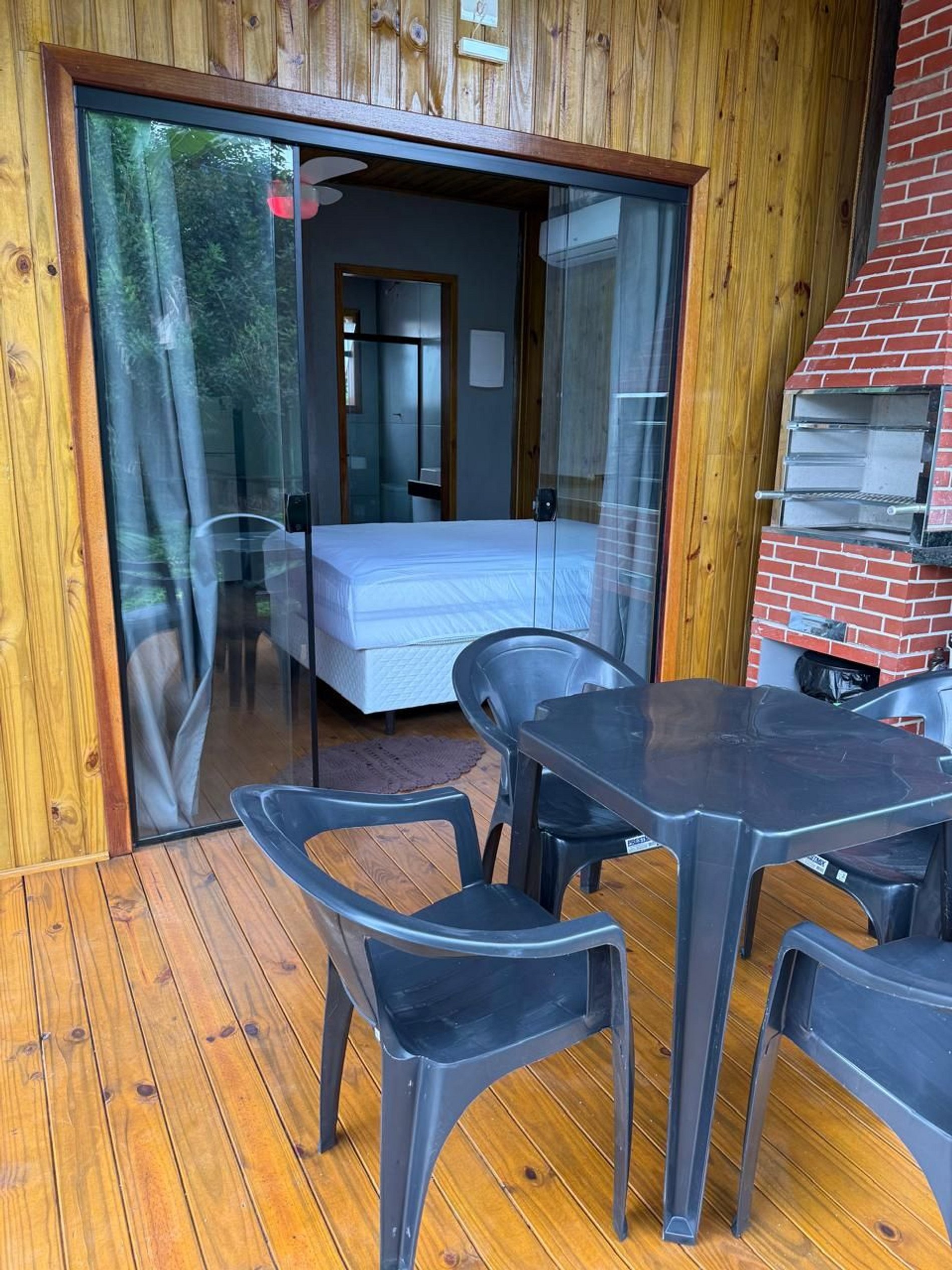 Chalé charmoso estilo estúdio, com todas as comodidades para até 4 pessoas, varanda com churrasqueira e a poucos metros da praia.