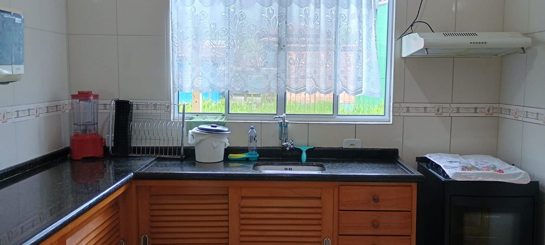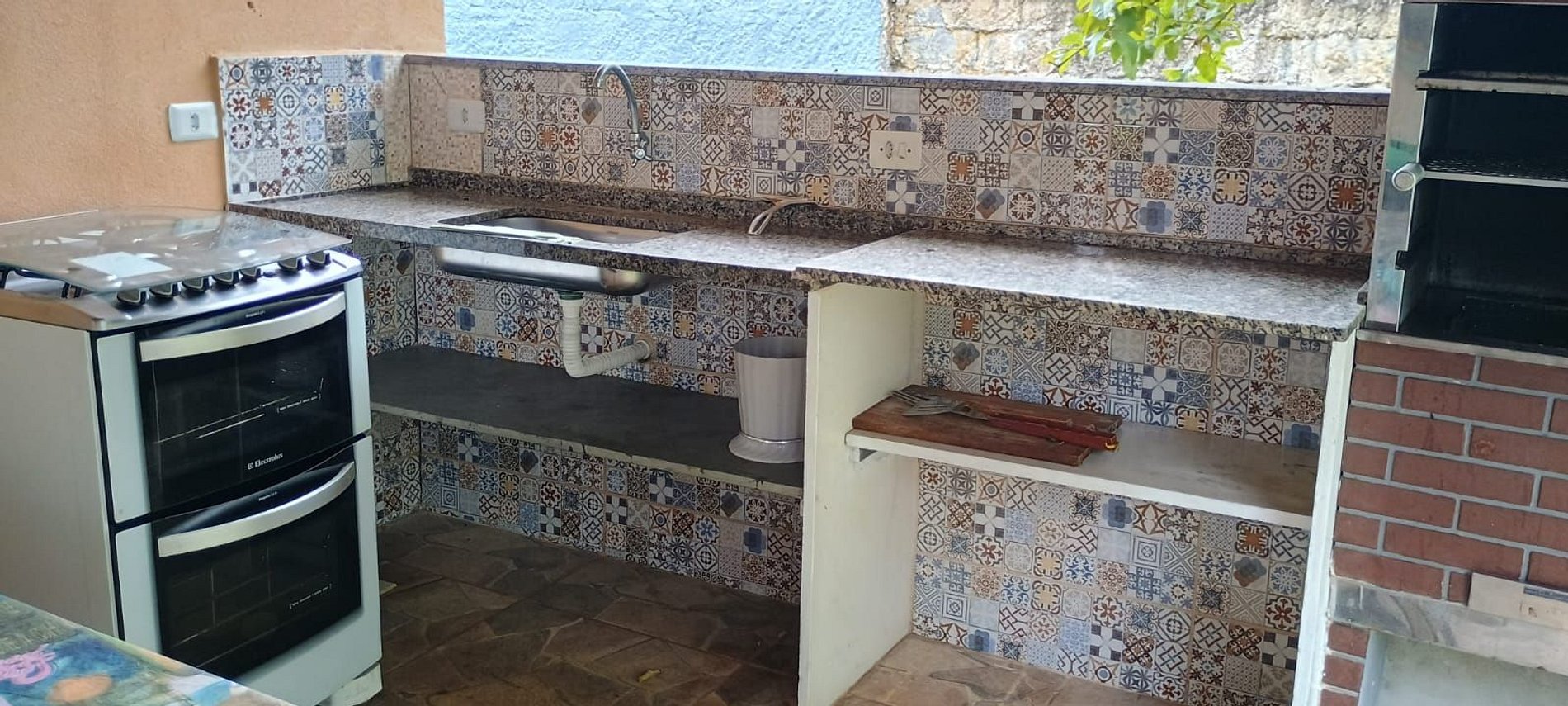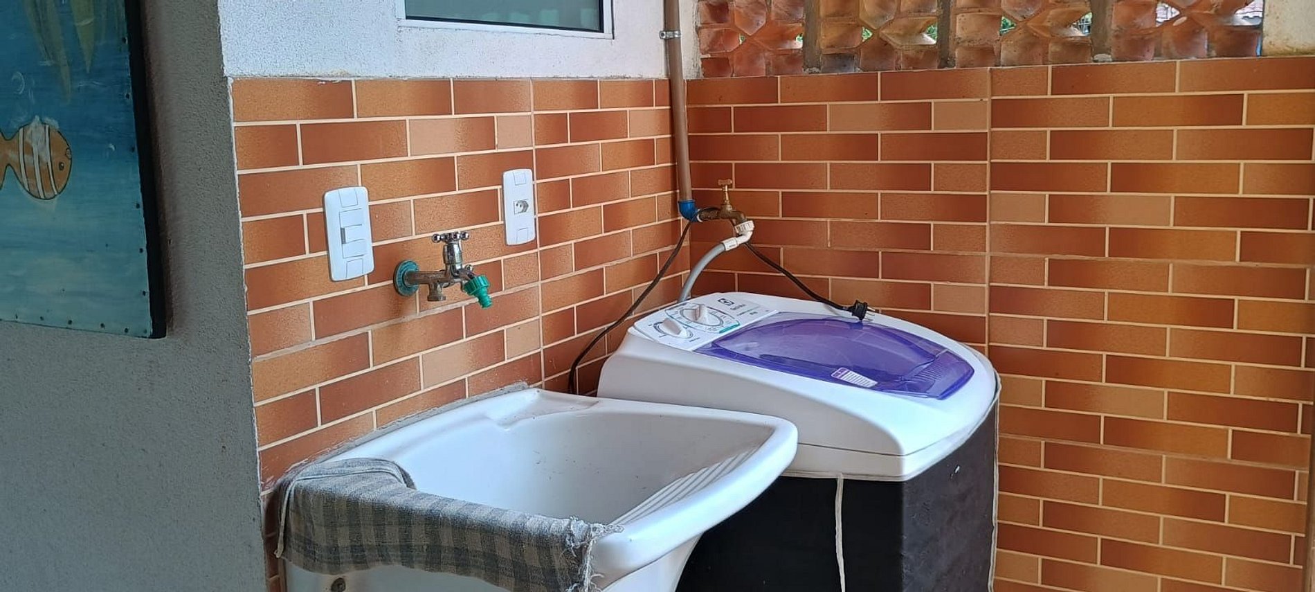 Cozinha: micro-ondas, grill, liquidificador, panelas, pratos, talheres e utensílios, geladeira, fogão, freezer vertical;