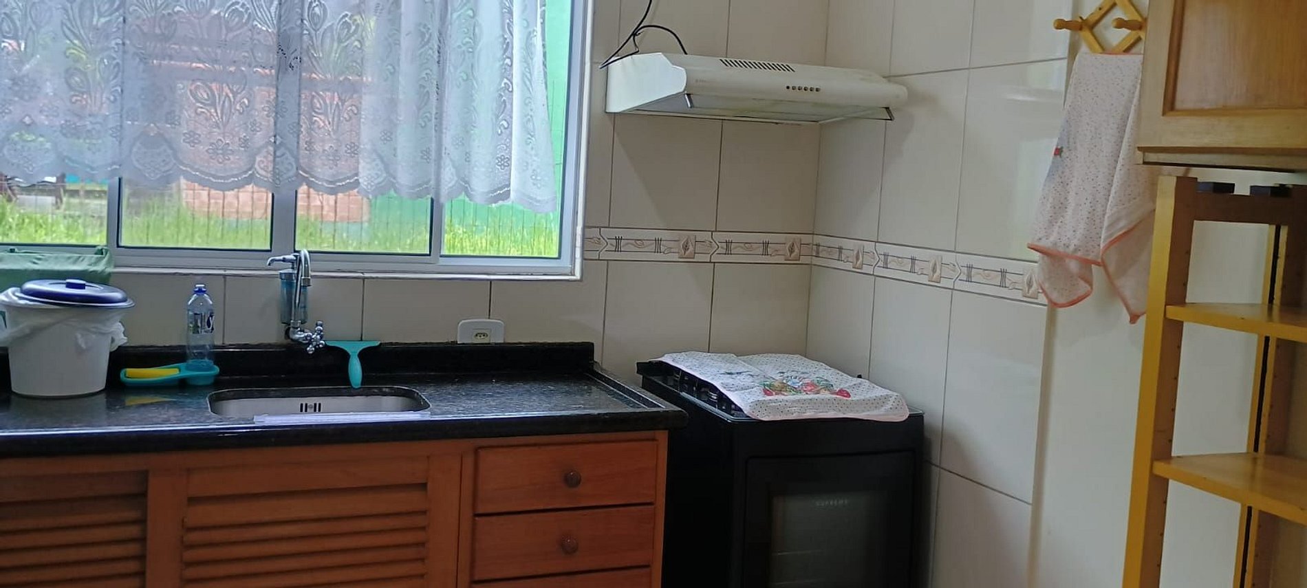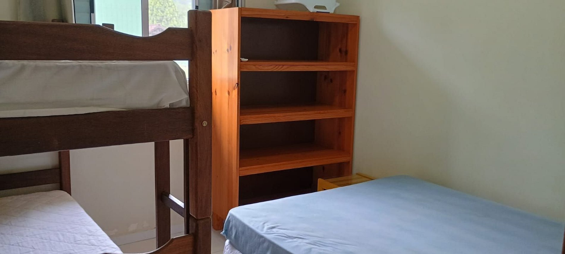 1 quarto: 1 cama de casal, 1 cama solteiro, 1 beliche (5 pessoas);